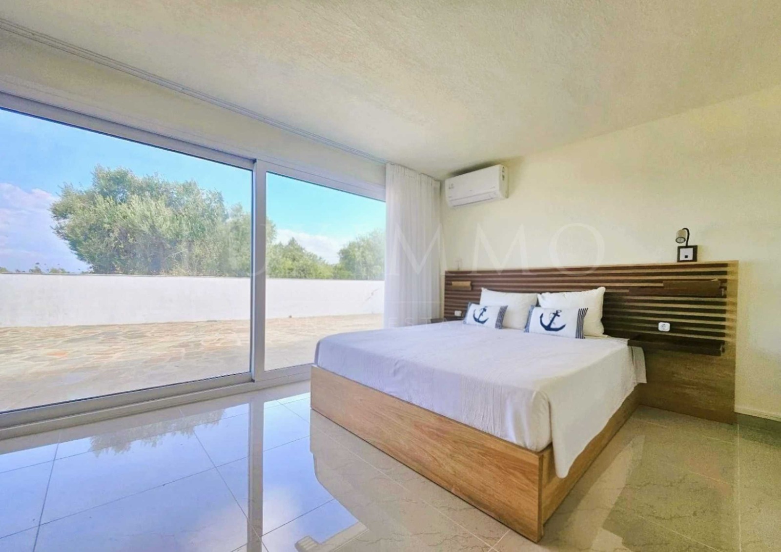 Огромният парцел (3,4 дка) е идеален за ландшафтен дизайн, BBQ зона, детски кът или просто спокойна почивка под сянката на маслиновите дръвчета.