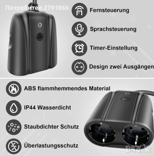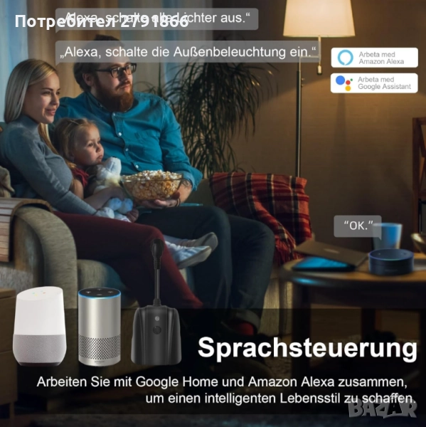 - [С този контакт можете да откриете колко лесно е да управлявате външни устройства] С приложението можете да контролирате осветлението и напоителната система във вашата градина, без да се налага да излизате от дома. С няколко прости гласови команди малки устройства могат лесно да се активират на закрито и на открито. С добре обмислената функция на таймера вече не е нужно да се притеснявате, че ще забравите да изключите устройствата си и ще причините боклук.