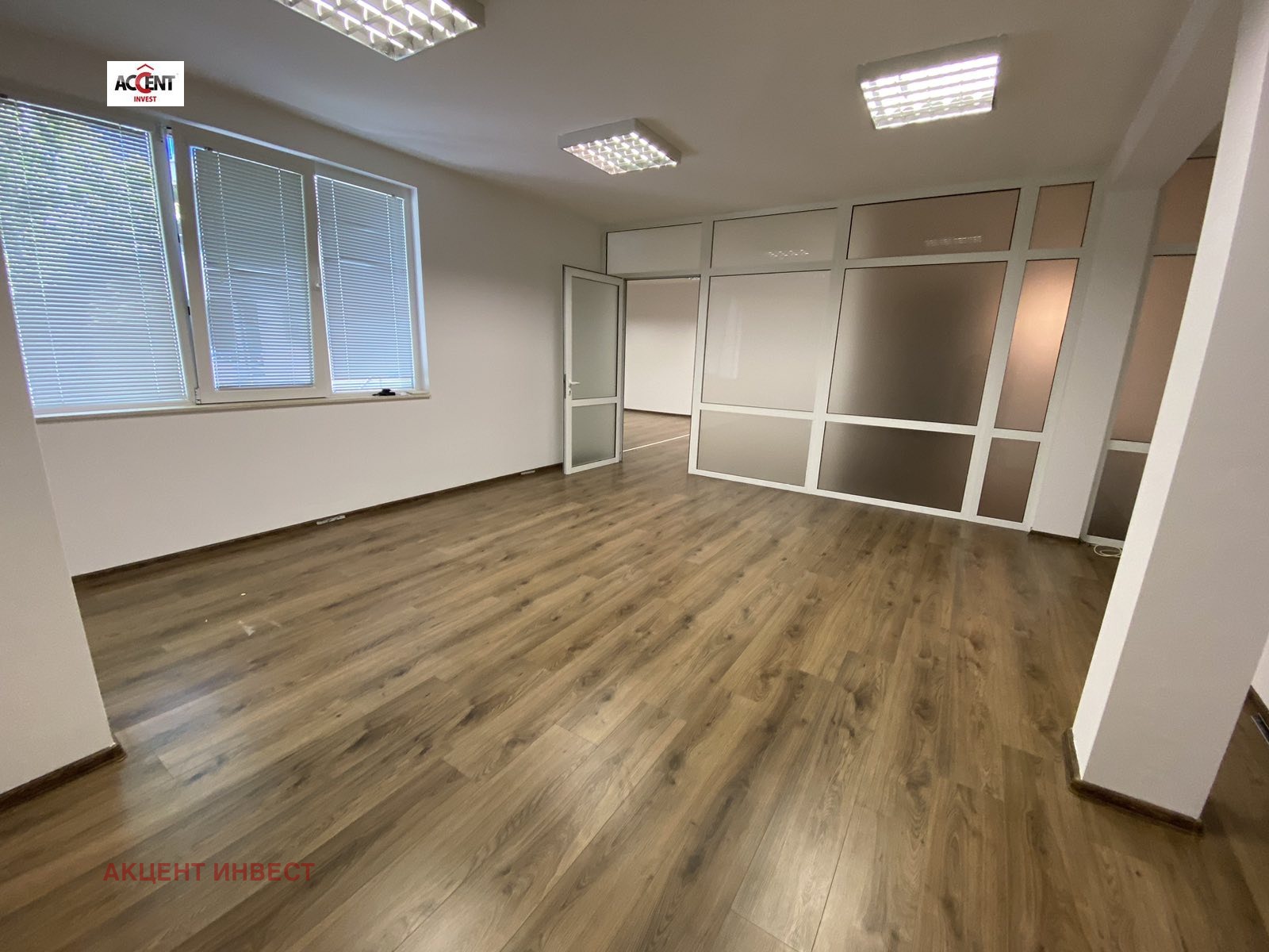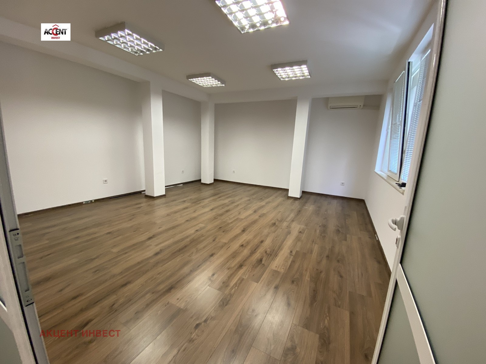 КОД 17393 'Акцент Инвест' Ви предлага офис под наем в района на Катедралата, ул. 'Братя Шкорпил'. Имотът е с площ от 125 кв.м. и се намира на втори етаж (над партер) в бизнес сграда. Офисът се състои от едно голямо Г-образно помещение (разделено на две от преграда), предверие и санитарен възел, тераса. Предлага се без обзавеждане, след освежаване. Дългосрочен наем, има климатици. Собственост на физическо лице. Има възможнсот за наемане на паркомясто.