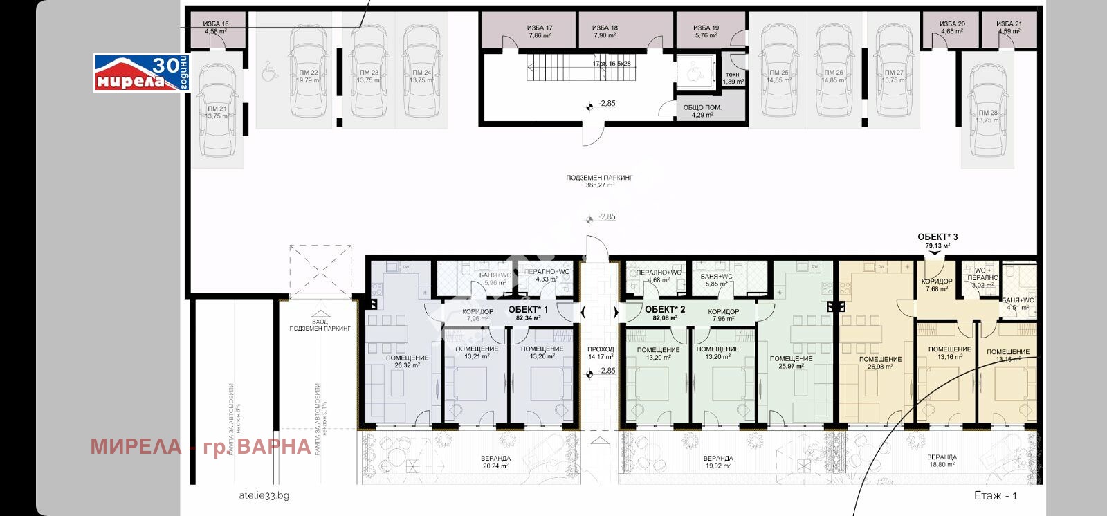 Към обекта принадлежи избено помещение 19 с големина 6.72 м2 (включено в цената).