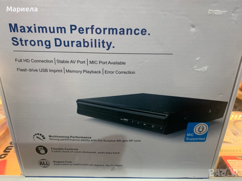 Материалът на корпуса на този компактен DVD плейър е метален , което е устойчиво на удар, разсейва топлината и е много стабилно.
