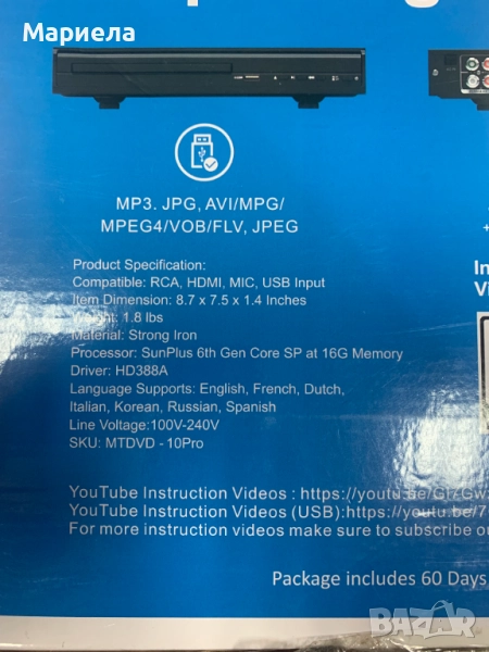 DVD плейър за телевизор, HDMI AV конектор, USB вход, микрофон, NTSC/PAL система