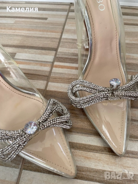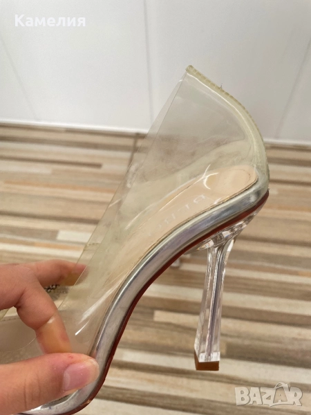 Обувките са носени само веднъж на бала ми. След това са стояли в шкафа. Имат леки петна по прозрачната част, най-вероятно могат да се изчистят.