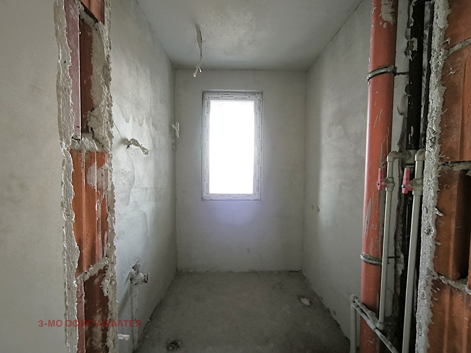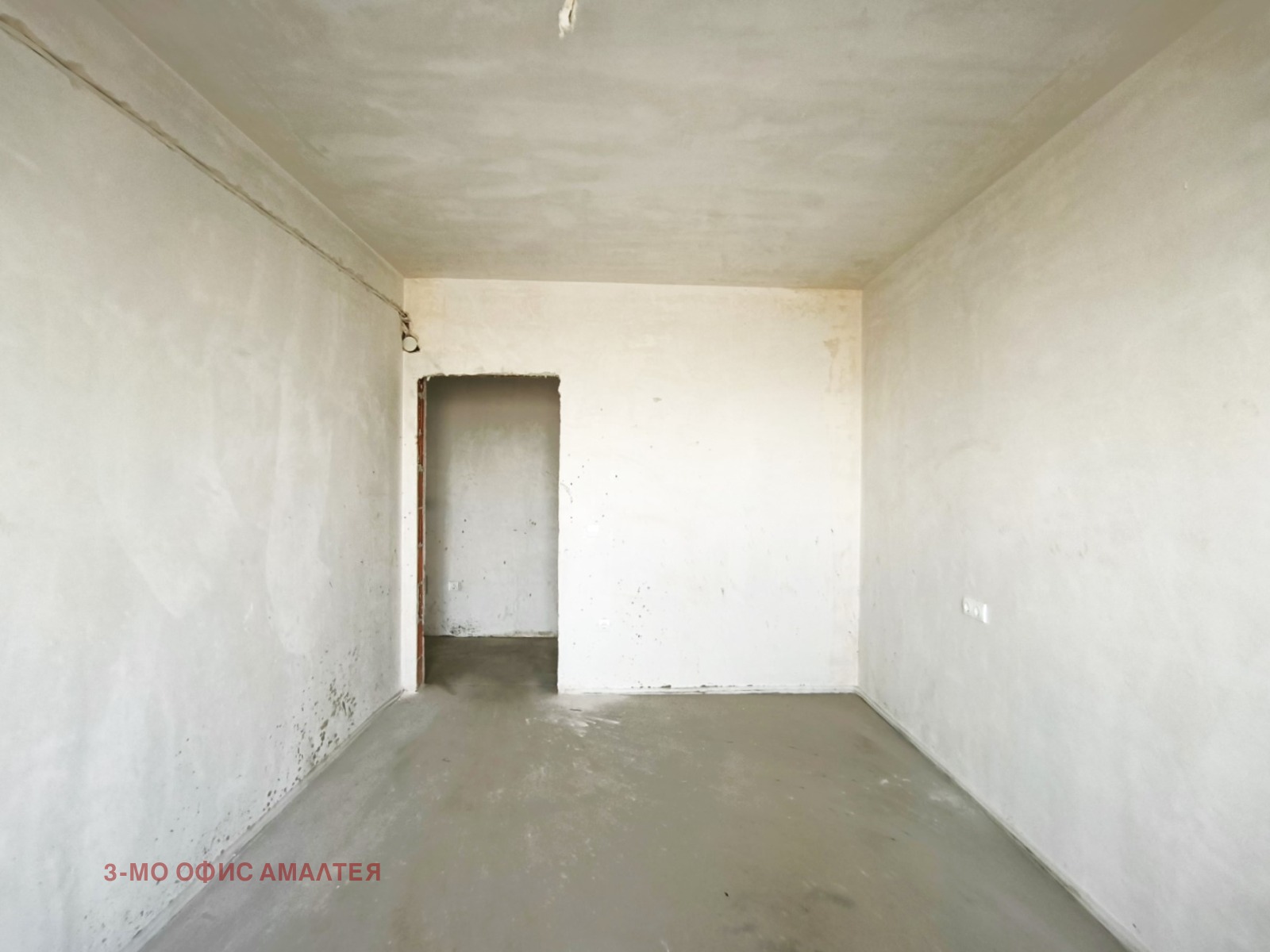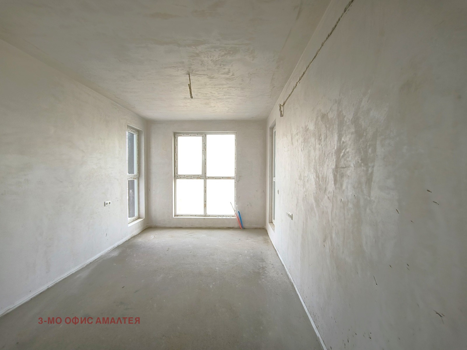 3mo Амалтея продава двустаен апартамент в нова модерна жилищна сграда пред Aкт 15 в ж.к. Люлин 5. Предложеният имот е с обща площ от 79,37 кв.м. (застроена 69,56 кв.м.) и се състои от: входно антре (3,60 кв.м.), всекидневна с кухненски бокс и трапезария (27,54 кв.м.) с излаз на балкон (2,60 кв.м.), спалня (14,50 кв.м.), втори балкон (1,60 кв.м., складово помещение (1,65 кв.м.) и санитарно помещение (3,85 кв.м). Жилището е разположено на шести от общо десет етажа с изложение югозапад и северозапад. Имотът се продава в степен на завършеност по БДС с монтирана входна врата, поставена дограма, изградена домофонна инсталация и интернет окабеляване. Има опция за индивидуална оферта от инвеститора за довършителни работи. Към имота може да се закупи паркомясто или гараж.