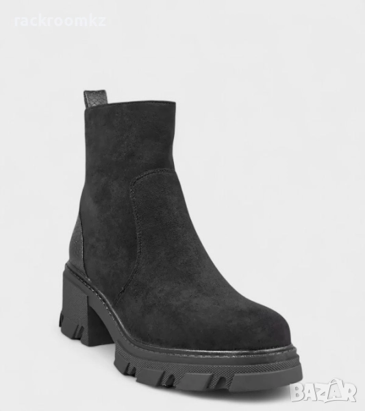 Стилни и удобни дамски боти в черен цвят, изработени от висококачествен еко велур с топъл хастар за допълнителен комфорт през студените дни.