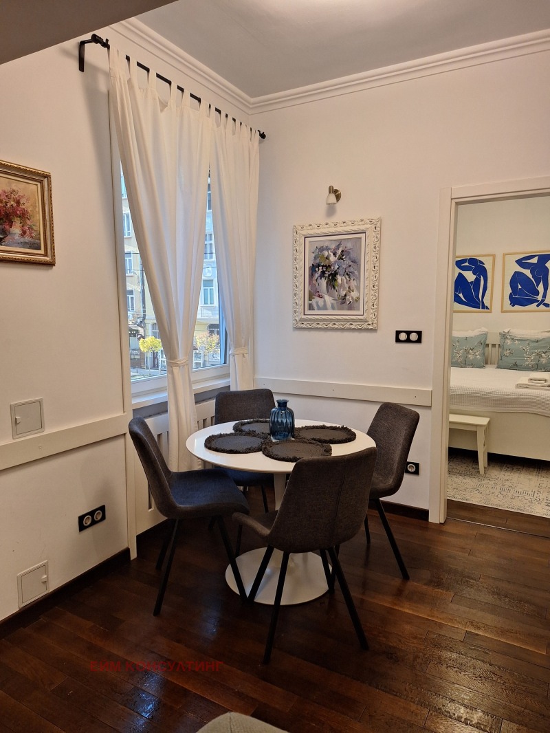 AimConslting има удоволствието да предложи на Вашето внимание тристаен апартамент за продажба в идеалния център на град София, ул. Г.С.Раковски, над ресторант HAPPY. Едно изключително предложение носещо сигурна и висока доходност, подходящо както за живеене така и за инвестиция. Локация с много ограничено предлагане на стойностни имоти. Жилището е изцяло реновирано по дизайнерски проект, изпълнен с висококачествени материали и обзавеждане, които създават усещане за уют, стил и класа. Разположено на втори етаж в пететажна тухлена сграда от 1960 година най-доброто старо строителство. Южното и западно изложение осигуряват естествена светлина в помещенията през целия ден. Функционалното разпределение включва входно антре, просторен хол с кухненски бокс, две спални, баня с тоалетна, мокро помещение, таванско помещение. Обзаведен и с отопление на ТЕЦ, апартаментът гарантира комфорт и удобство. Стилен, светъл, модерен, уютен. В обявената цена влиза всичко налично в апартамента, пердета с корнизи, осветителни тела, мебели и електро уреди, налични аксесоари. Дограмата е PVC с отлични шумо и топлоизолационни качества.