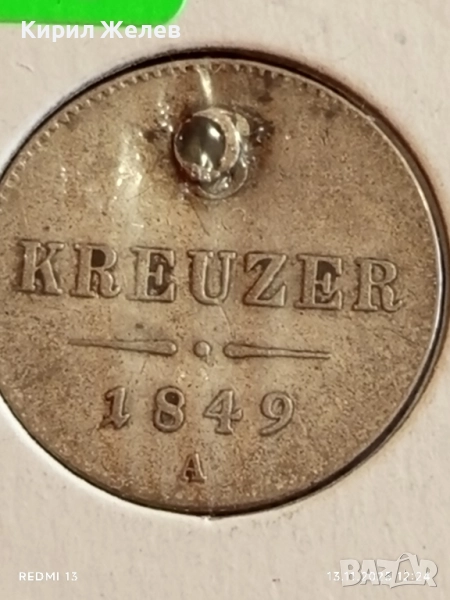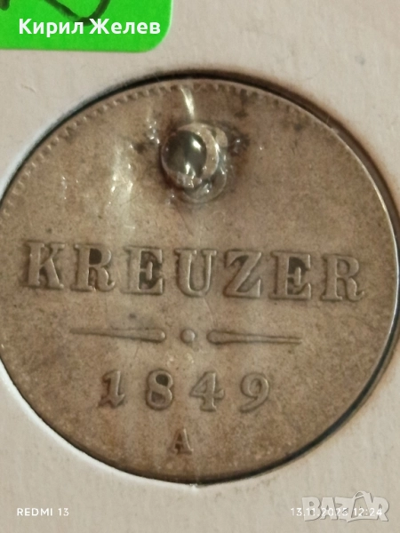 Сребърна монета 3 кройцер 1849г. Австрия рядка за КОЛЕКЦИЯ 51979