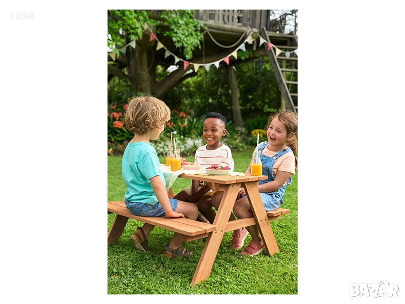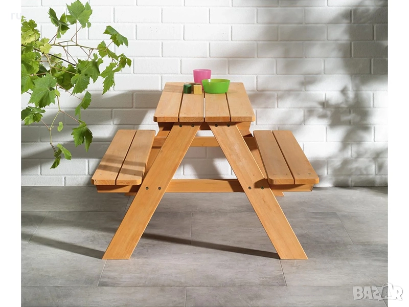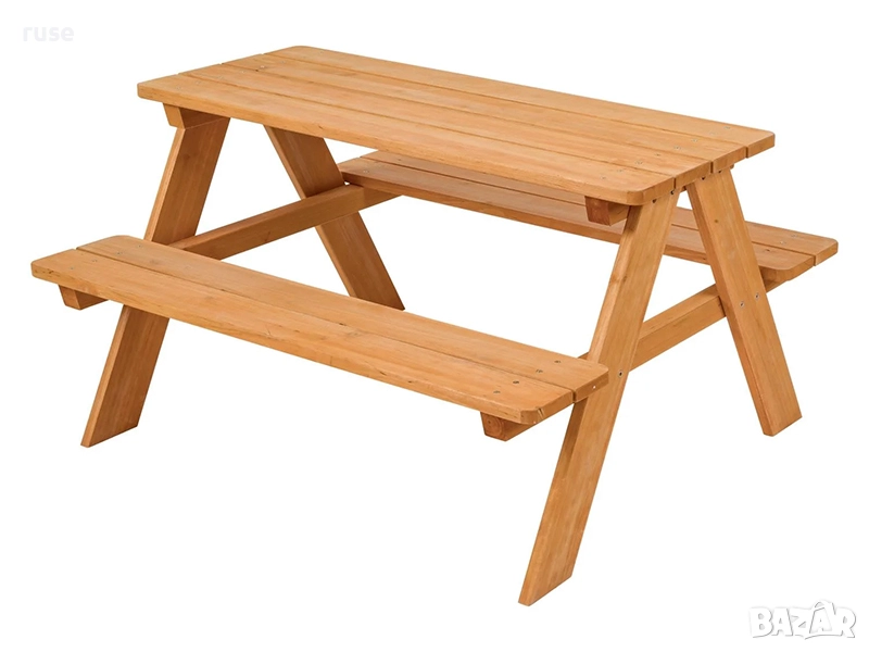 НОВА! Детска дървена маса с пейки 89x79x50см
