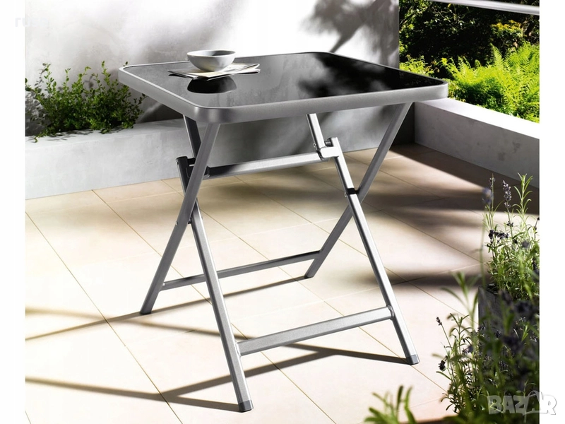 НОВА! Сгъваема алуминиева маса Хюстън/Торонто със стъклен плот 70х70х70см