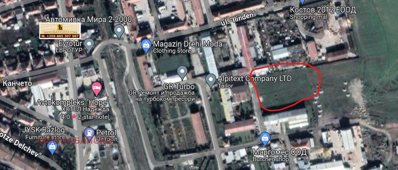 Имоти Банско БГ ЕООД представя парцел за застрояване в промишлената зона на град Разлог, вид територия Урбанизирана, НТП За шивашката промишленост, площ 5031 кв. м