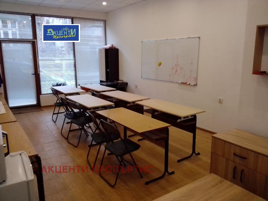 Агенция за недвижими имоти Акценти Пропъртис Ви предлагаме магазин/офис/ на 2 нива/тип мезонет/, разположен в центъра на гр.В.Търново.Първото ниво е на тротоар, с голяма витрина, с полезна площ от 45 кв.м.Второто ниво е на ниво/-1/, с площ от 80кв.м., с прозорец и без колони.Двете нива са свързани помежду си със вътрешна стълба.Офисът е в отлично състояние, което ви дава възможност за незабавно нанасяне.Отоплението и охлаждането е решено чрез монтирани два климатика, подовата настилка е гранитогрес, стените са шпакловани и боядисани, окачен таван.В момента е оборудвано с 10 бр. ученически чинове, 30 бр. столове, бяла дъска, диван, хладилник, микровълнова, маса за тенис... В момента помещението е със статут на магазин. Паркинг в района.Заповядайте на оглед!Номер на офертата 131125.