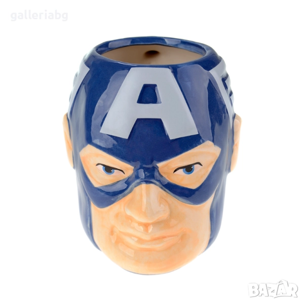 Уникална 3D керамична чаша във формата на Капитан Америка – страхотен артикул за фенове на супергерои, колекционери или просто за хора, които обичат интересни и нестандартни предмети.