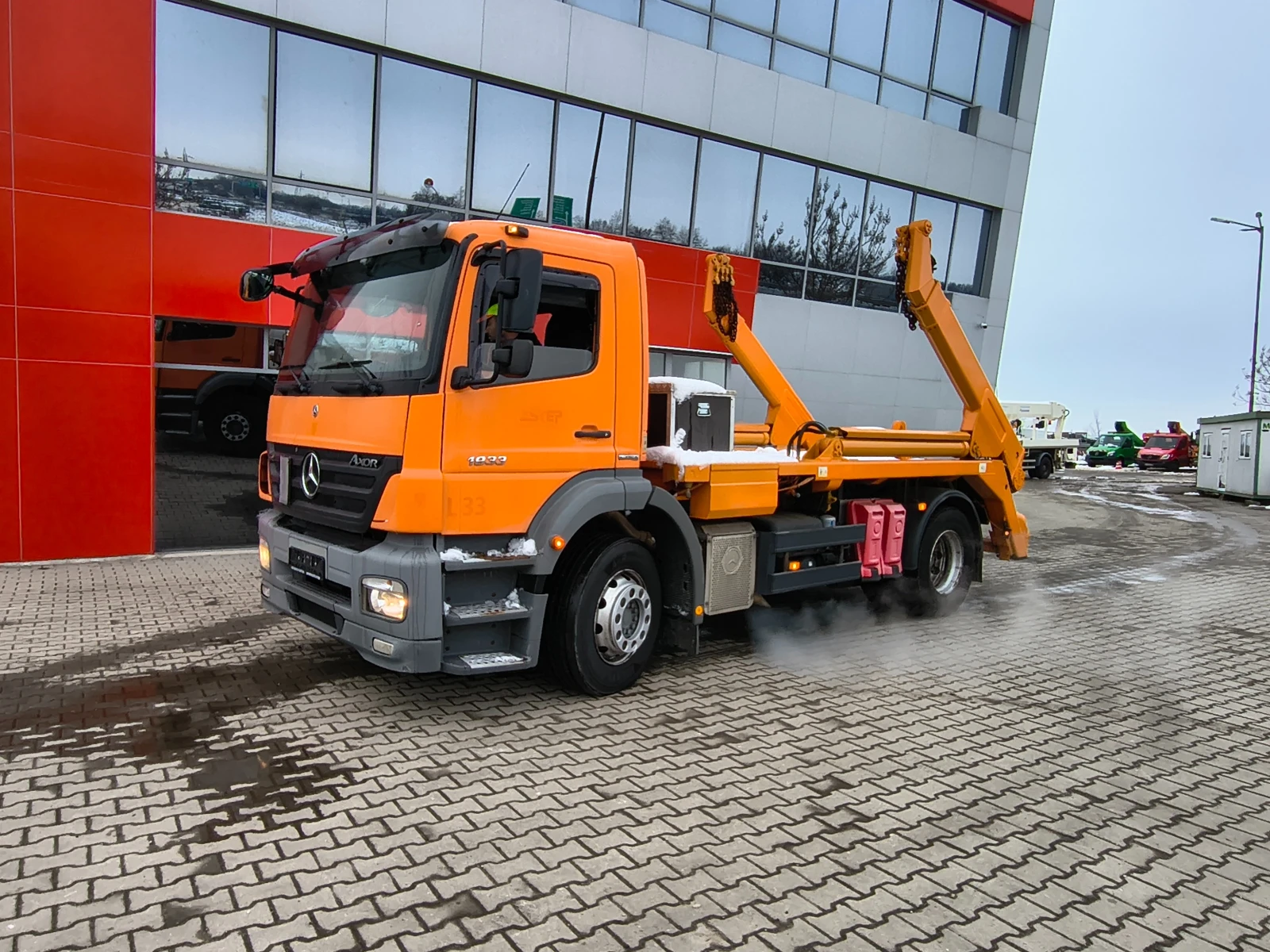 контейнеровоз на базов автомобил Mercedes-Benz Axor MB1833 със следните технически характеристики: Шаси: Mercedes-Benz Axor Технически допустима маса: 18 000 кг. Колесна формула: 4 х 2 Двигател: Дизел Мощност: 326 к. с. Евростандарт: Евро 5 Пробег: 334 500 км Уредба: MEILLER Товароносимост: 8 160 кг. Година на производство: 2010 г. Наличен в база на Дестинация България EООД Автомагистрала Тракия 132 км. Ние произвеждаме, продаваме и ремонтираме автовишки - нови и втора употреба. Нашите предимства са: - 6 месеца гаранция на всички вишки втора употреба, 3 години на новите вишки; - 10 мобилни ремонтни екипа за поддръжка на вишки в цялата страна. Ремонтни бази в Пловдив и Бургас; - Ежемесечна функционална проверка на закупените вишки съгласно наредбата; - В цената на вишките е включено обучение на двама оператори в нашия учебен център и издаване на държавно удостоверение; - Възможност за разсрочено плащане без оскъпяване; - Всички машини са с пълна техническа документация, регистрирани от орган за технически надзор и осигурен годишен преглед; - При авария на закупена от нас вишка предоставяме заместваща вишка до отстраняване на повредата; - Възможност за обратно изкупуване или замяна с друга вишка; - Пренасочване на запитвания за наем на вишки към нашите партньори - клиенти в страната.