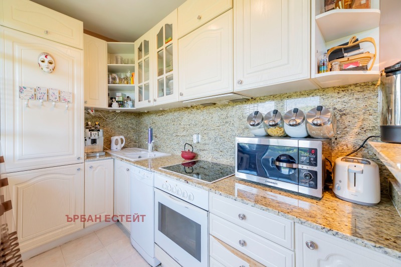 Мезонетът е с отлично разпределение, много естествена светлина и живописна гледка от един от балконите се открива панорама към Витоша и телевизионната кула. Жилището е обзаведено и е в много добро състояние, с поддържани общи части и обособен достъп до двата етажа. Отоплението е на ТЕЦ, като в хола и основната спалня има монтирани климатици.
