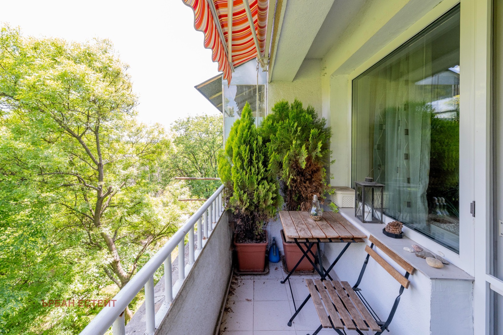 -Кухненски бокс с отделен балкон и гледка към парка