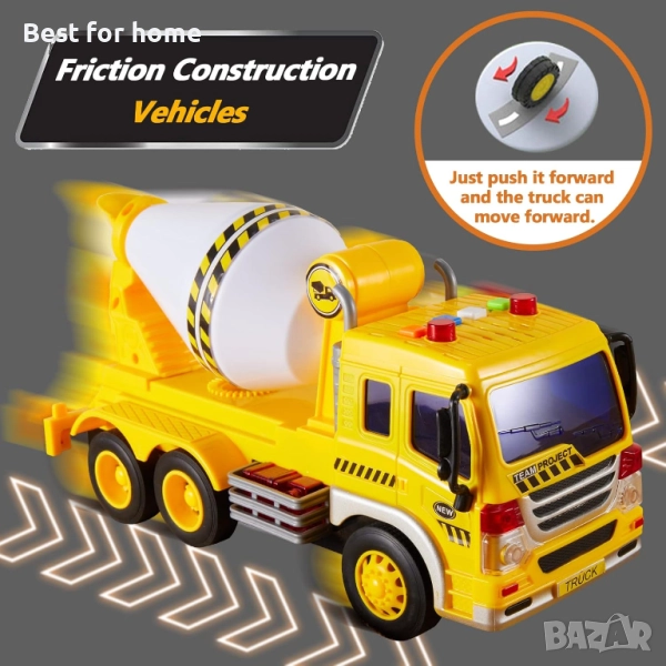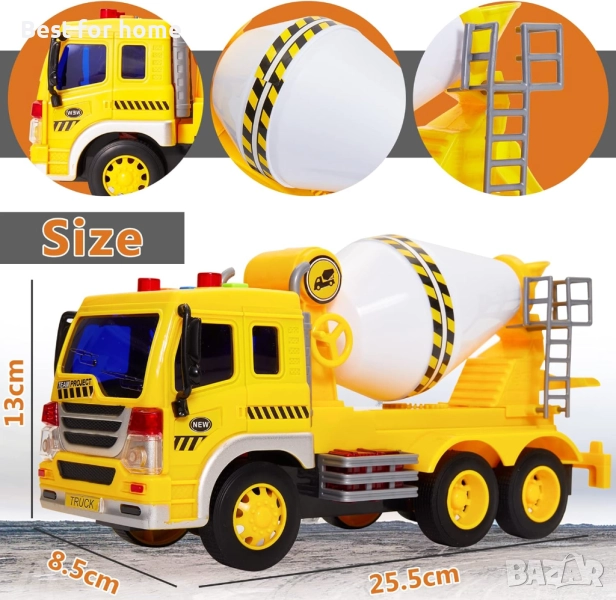 HERSITY Бетонобъркачка Играчка Количка Голяма със звук и светлина Камион Пясъчник Детска играчка Подарък за деца Момчета 3 4 5 години, 1:16 Играчка Миксер.