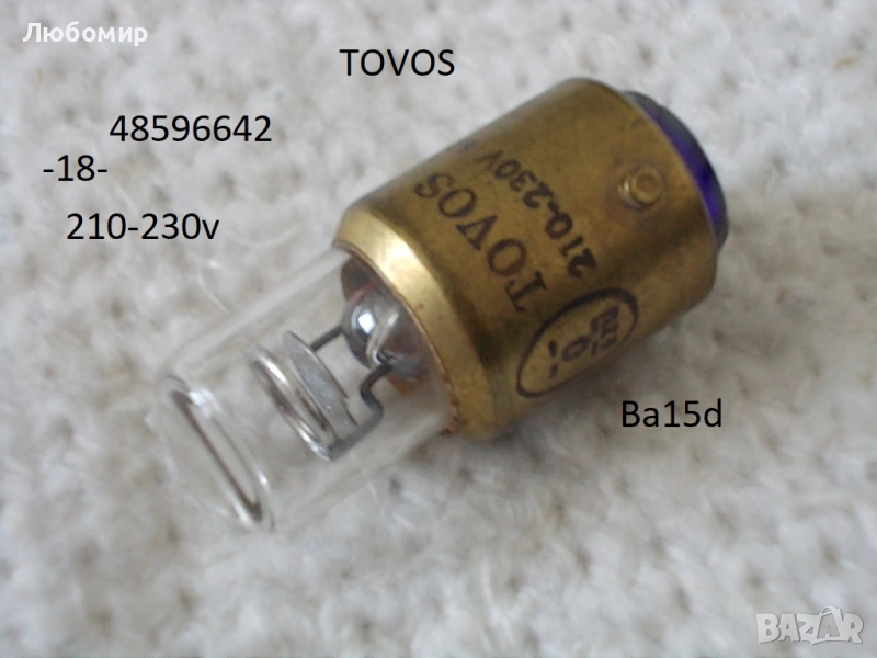 18. Лампа глим 220v Ba15d TOVOS - неизползвано - 1 бр. х 5 лв.