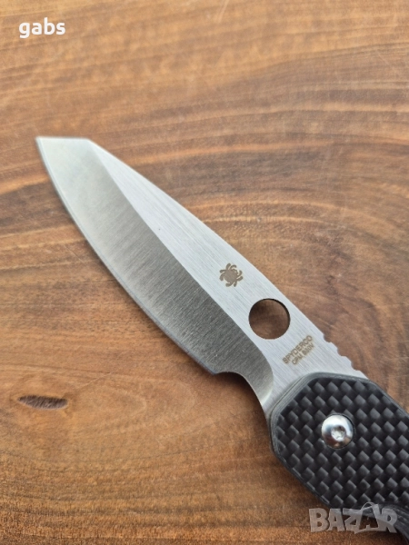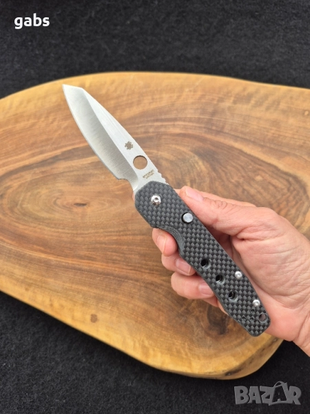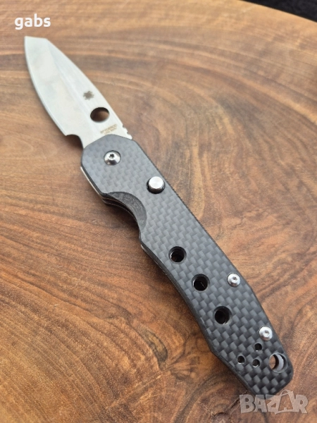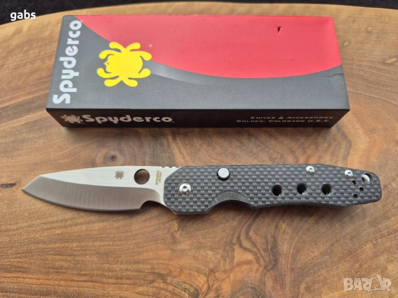 Spyderco Smock е прецизно изработено от неръждаема стомана CPM S30V и включва както Trademark Round Hole, така и елегантно семпъл механизъм за отваряне на перка. Действието на перката се поддържа от чифт специални шарнирни лагери и специален вторичен фиксиращ механизъм, отделен от ключалката на ножа. Той е съчетан със скелетонизирана дръжка с изцяло облицовки от неръждаема стомана, текстурирани люспи от въглеродни влакна/G-10 ламинат, лека конструкция с отворен гръб и обръщаема щипка за джоб за носене и с двете ръце.