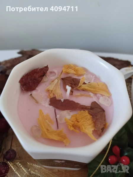 Декоративна свещ със соев восък и аромат на цветя → Обява 52402639