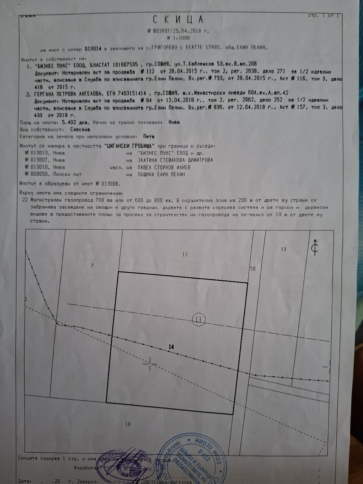 Продава ПАРЦЕЛ, с. Григорево, област София област → Обява 52402694