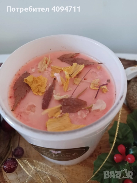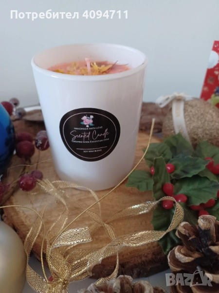 Декоративна свещ със соев восък и аромат на цветя → Обява 52402877