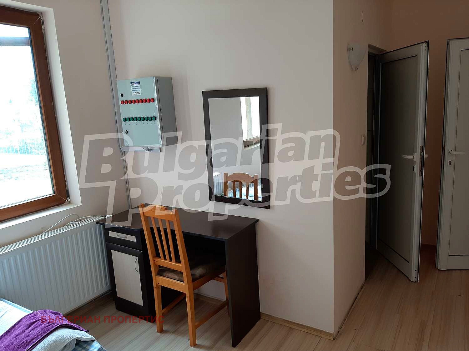 Сградата е с прилежащ терен с площ 1729 кв.м и разгъната застроена площ от 468 кв.м., разпределена между 4 етажа, единият от които сутеренен. Всеки етаж разполага с по три стаи за настаняване, с по 2, 3 и 4 легла и собствен санитарен възел и офис - общо 10 стаи и 35 легла. Отоплението е с локално парно с котел на пелети. Предлага се с обзавеждането и оборудването, които може да разгледате на снимките. Доставени електричество и централно водоснабдяване.
