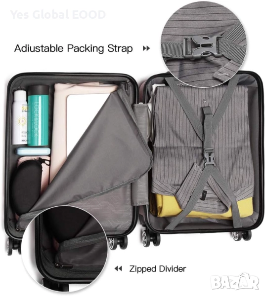 Твърдият куфар KONO е лек, издръжлив и перфектен за пътуване със самолет. С размери 51.5 × 38 × 21 см и капацитет 39 литра, той отговаря на стандартите за ръчен багаж при множество авиокомпании. ABS корпусът е устойчив на удари, а четирите двойни колела осигуряват плавно и безшумно движение. Куфарът разполага с безопасна TSA заключваща система и телескопична дръжка за максимално удобство при пътуване. Идеален за уикенд пътувания, почивки и бизнес пътувания.