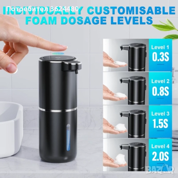 Регулиране на Дозата: Предлага индивидуално настройване на дозата с до 4 различни нива на дозиране (от 0.3S до 2.0S). Изберете перфектното количество пяна за деца или възрастни.