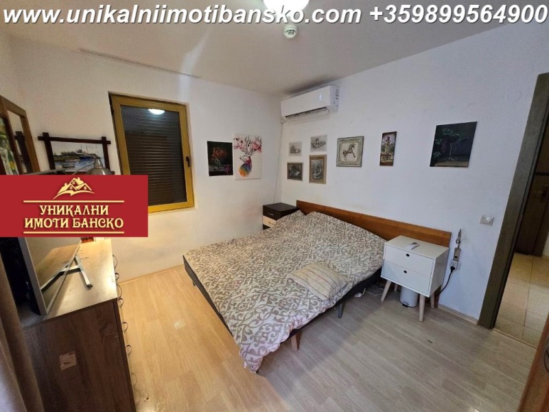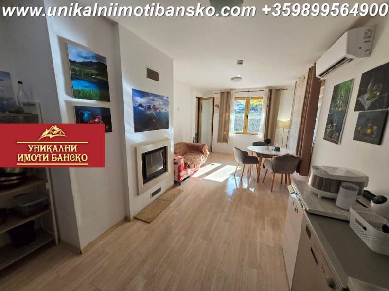 www.unikalniimotibansko.com БЕЗ КОМИСИОННА ОТ КУПУВАЧА! Агенция 'Уникални Имоти Банско' предлага за продажба НАПЪЛНО ОБЗАВЕДЕН И ГОТОВ ЗА НАНАСЯНЕ ТРИСТАЕН АПАРТАМЕНТ, РАЗПОЛОЖЕН В КОМПЛЕКС С НИСКА ТАКСА ПОДДРЪЖКА И ОТЛИЧНА ЛОКАЦИЯ - НАД СКИ ЗОНАТА НА ГРАД БАНСКО, НА ОКОЛО 15 МИНУТИ ПЕША ОТ КАБИНКОВИЯ ЛИФТ! ОТДЕЛНИ ПАРТИДИ ЗА ТОК И ВОДА! Жилището е разположено на партерен етаж, като е съставено от коридор, три самостоятелно и НЕпреходно разположени стаи - две спални, всекидневна и две бани. Във всекидневната има готварска печка, хладилник и мивка, а от другата страна има трапезна маса със столове и диван. В стаята има камина на дърва. Едната спалня разполага с едно голямо двойно легло и гардероб, а другата с диван и бюро. И трите стаи имат излаз към собствена голяма тераса, като в спалните тя е остъклена и е направена на веранда. Едната баня разполага с вана, душ и тоалетна, а другата само с тоалетна, като там има и перална + сушилня. Страхотна инвестиция в имот, който може да ползвате за постоянно живеене, отдаване под наем или ваканционни посещения!