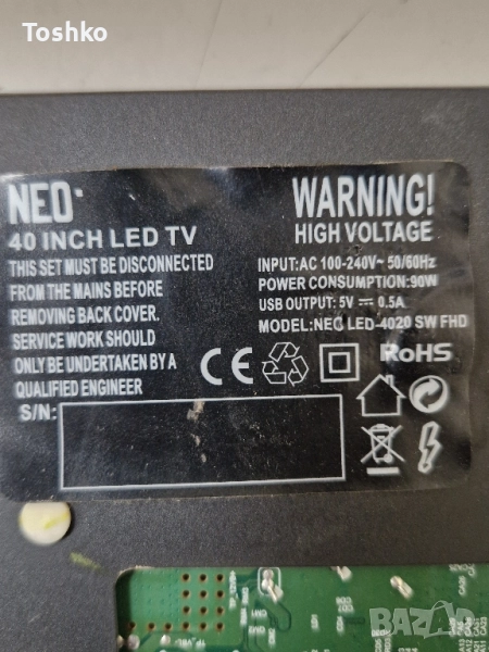 NEO LED-4020 SW FHD MAIN BOARD TP.SK508S.PB802 PANEL V400HJ6-PE → Обява 52403724