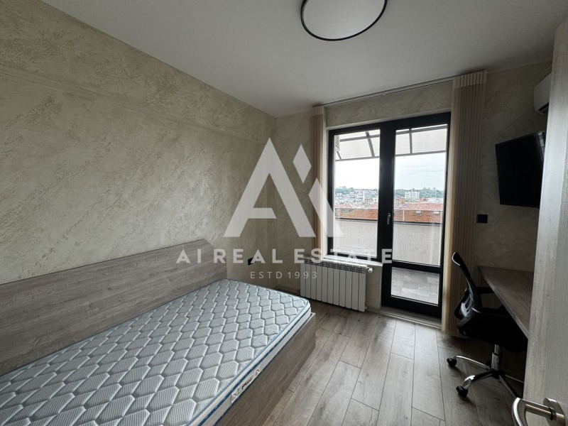 Предлагаме под наем напълно обзаведен тристаен апартамент, в който не е живяно досега. Имотът се намира в новопостроена сграда от 2024 г., с асансьор и отлични общи части, разположен на 5-ти етаж от общо 6 жилищни.