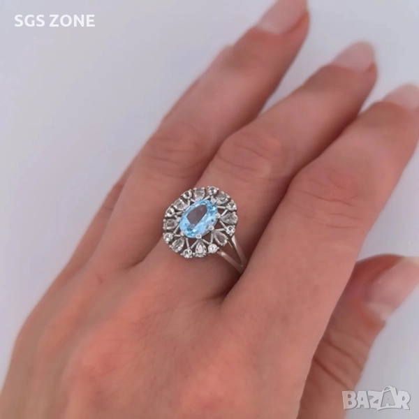 СРЕБЪРН ПРЪСТЕН С НАТУРАЛЕН СИН ТОПАЗ И МАЛЪК ПРОЗРАЧЕН ТОПАЗ. Още снимки и видеа на продукта в Instagram и Facebook sgs.zone, уебсайт sgs.zone. Изпращане Speedy и Эконт. Шоурум в София, Дондуков, 53. Всички продукти са със сертификати и подаръчна кутия
