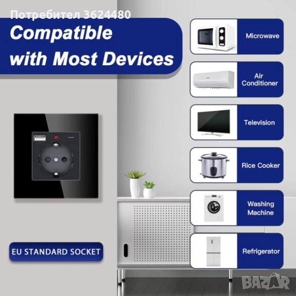 USB Изходи: USB-A и Type-C. Общ изходен ток до 2.1 A(5 V, идеален за зареждане на смартфони, таблети и други.