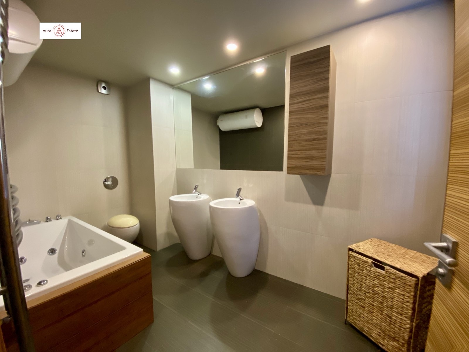 - Първи етаж: един апартамент с площ 330 кв.м. с директен излаз към озеленен двор и три паркоместа