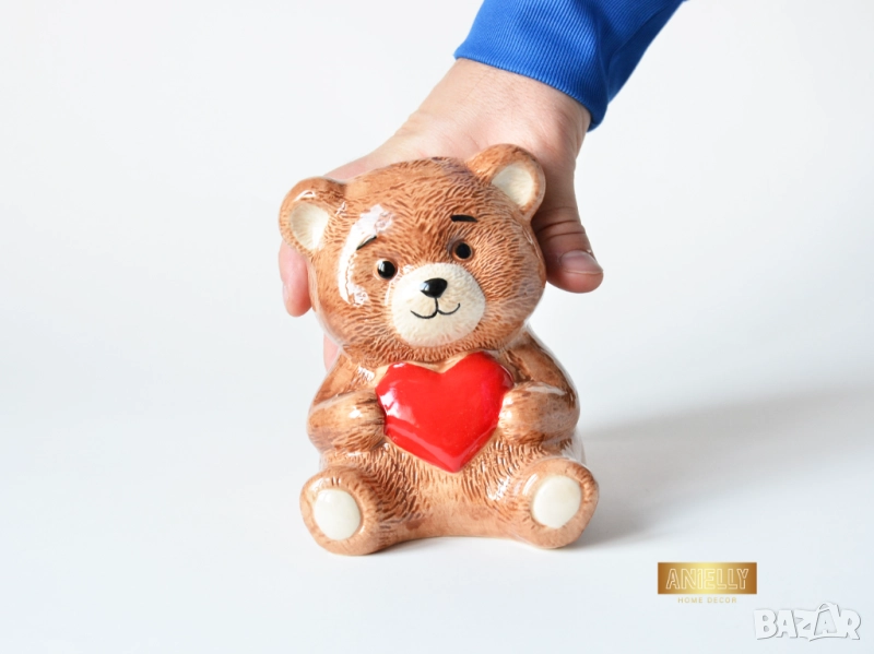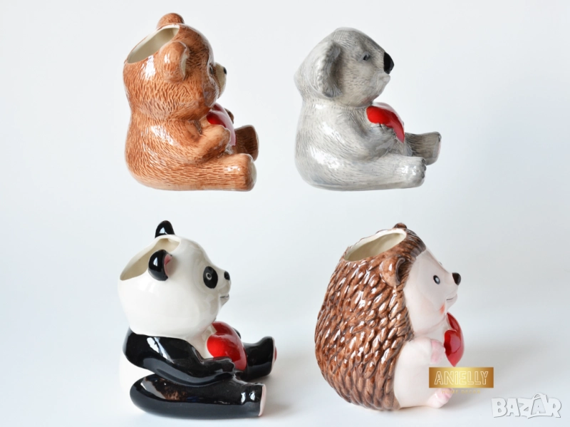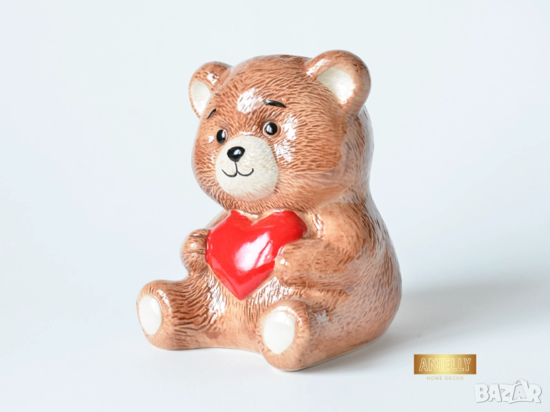 Тази очарователна ръчно рисувана керамична кашпа във формата на мече, което държи сърце, е перфектното допълнение към всеки дом, пълен с любов и уют.