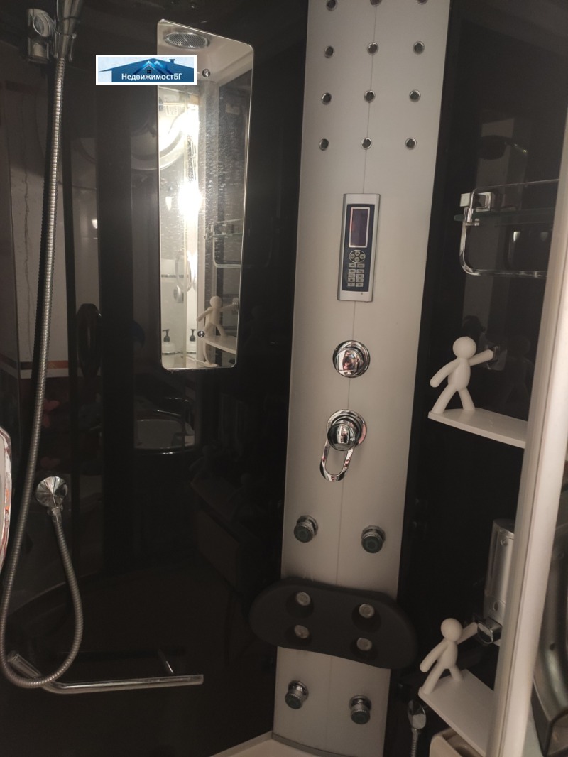 Банята е с парна душ кабина, масажни дюзи врат, гръб,кръст и крака, радио. Сешоар, сушилник за кърпи.