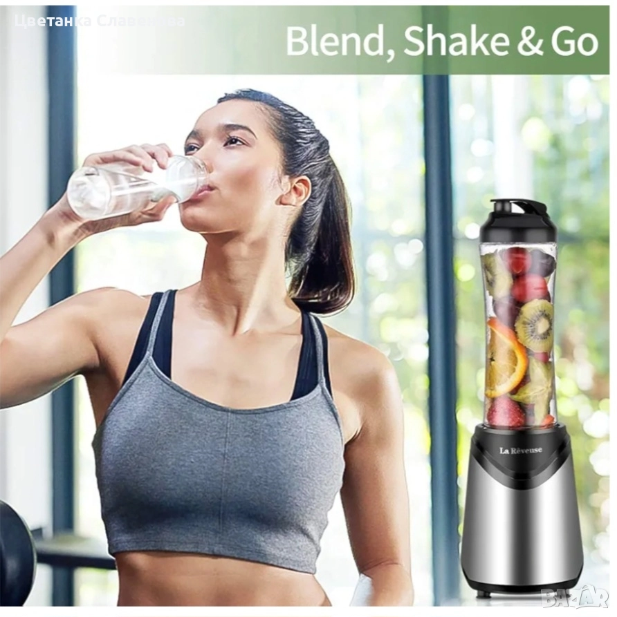 Преносимо хранене. Този малък блендер е с тегло 1,3 кг, размер на чашата: 7,6 см в диаметър х 23,7 см височина. Пасирайте и пийте от една и съща бутилка, с допълнителен капак за пътуване. Независимо дали пътувате, тренирате, отивате на работа или учите, преносимостта на La Reveuse ви позволява да носите любимите си напитки, където и да отидете. Спортният капак го прави лесен за вземане на път до офиса, фитнеса или училище, в колата (подходящ за повечето държачи за напитки в кола) или в чантата ви.
