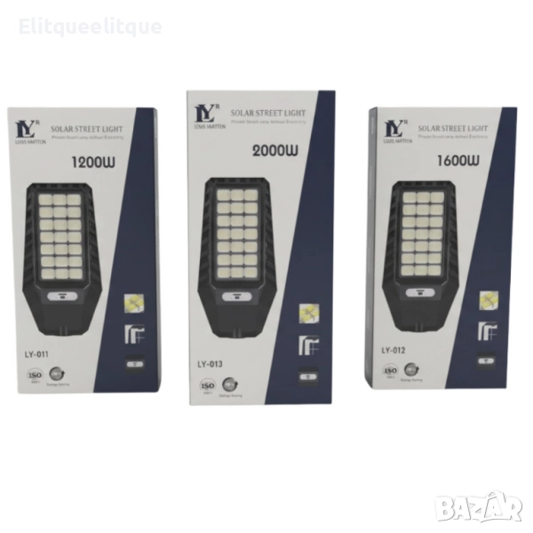 Ако търсиш ярко външно осветление без разходи за ток, слънчевата улична лампа Louis Yartton е идеалното решение. Работи напълно автономно – зарежда се през деня и свети през нощта, без нужда от електрическа връзка. Моделите 1200W / 1600W / 2000W осигуряват мощна LED светлина с до 80% енергоспестяване, а интелигентният сензор автоматично я включва при здрач и изключва при изгрев. Водоустойчива и устойчива на климатични условия, тя е подходяща за двор, улица или паркинг. Марка: Louis Yartton | Модели: LY-011 / LY-012 / LY-013 | Енергийна ефективност: 80% | Тип: LED, соларна, сензорна лампа