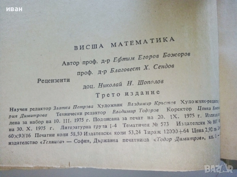Висша Математика - Е.Божоров - 1975г. → Обява 52404621