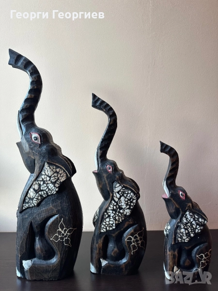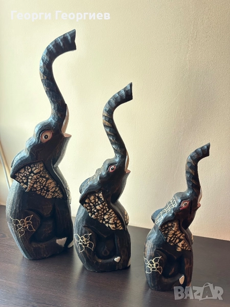 Страхотно трио дървени слонове → Обява 52404736