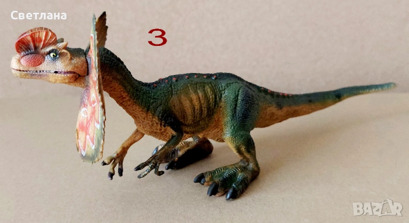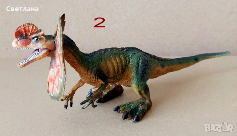 1. Тази фигурка изобразява Дилофозавър, двуног месояден динозавър, живял през ранния юрски период (преди приблизително 183–195 милиона години) на територията на днешна Северна Америка.
