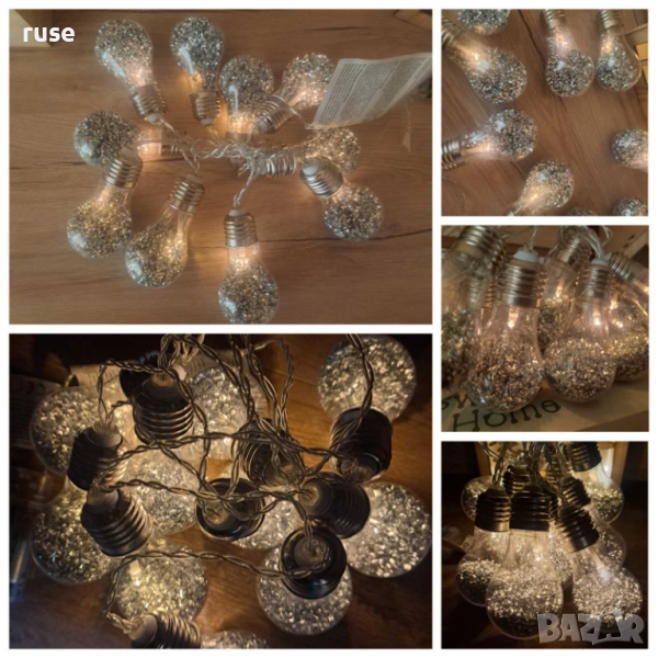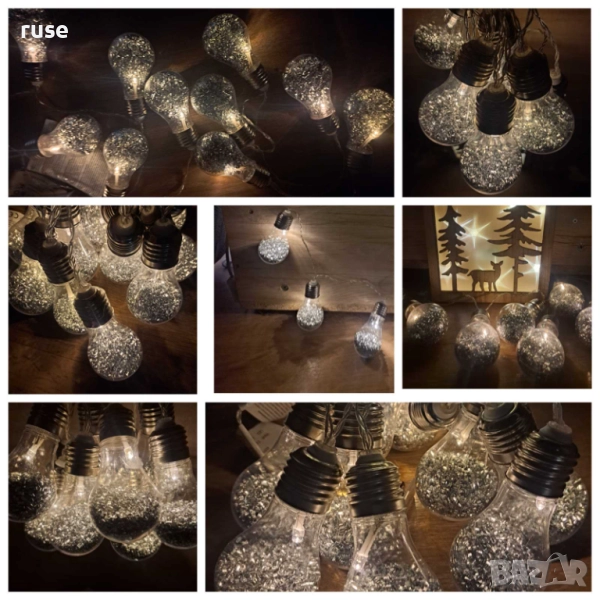 10 крушки/лампи с декоратични частици светещи в топла бяла светлина!