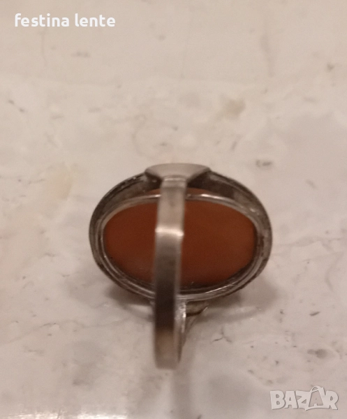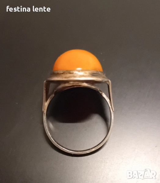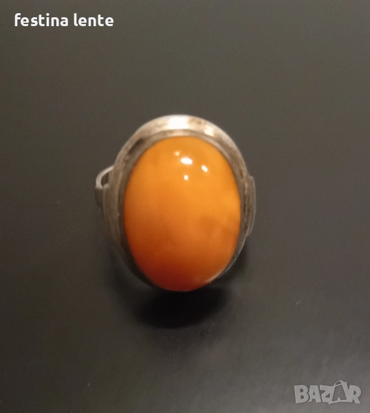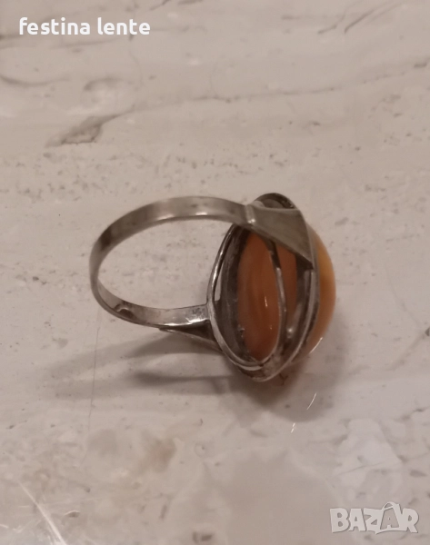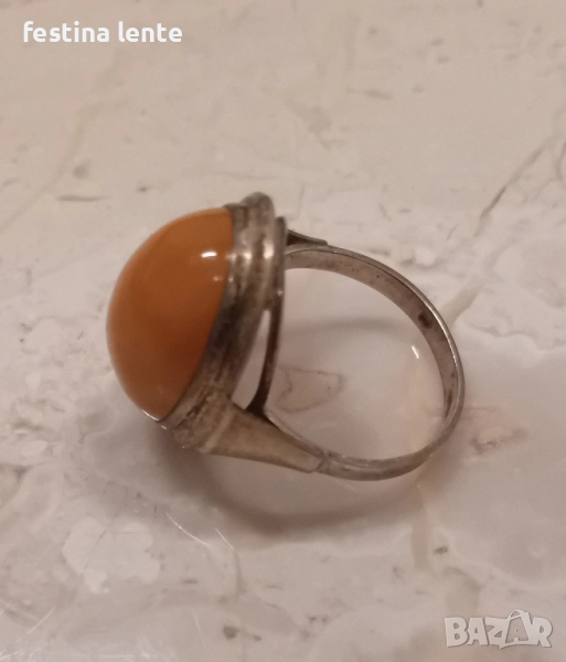 Стар руски сребърен пръстен с кехлибар → Обява 52405507