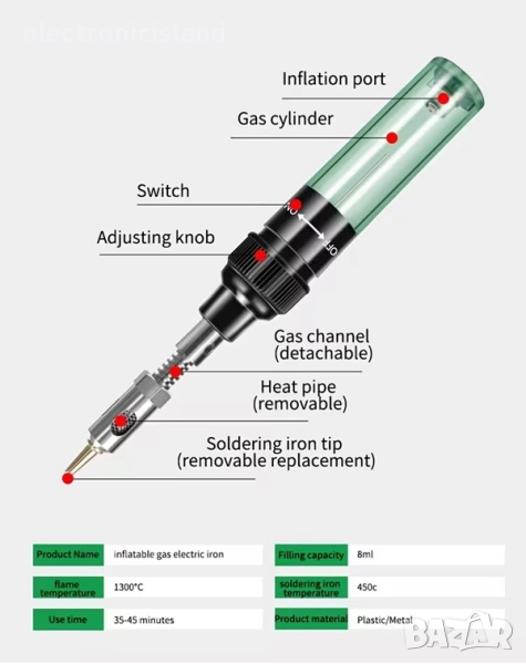Газов преносим поялник с пропан бутан и регулируема температура, инструмент за заваряване