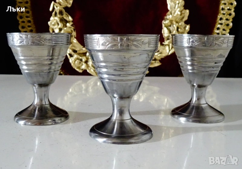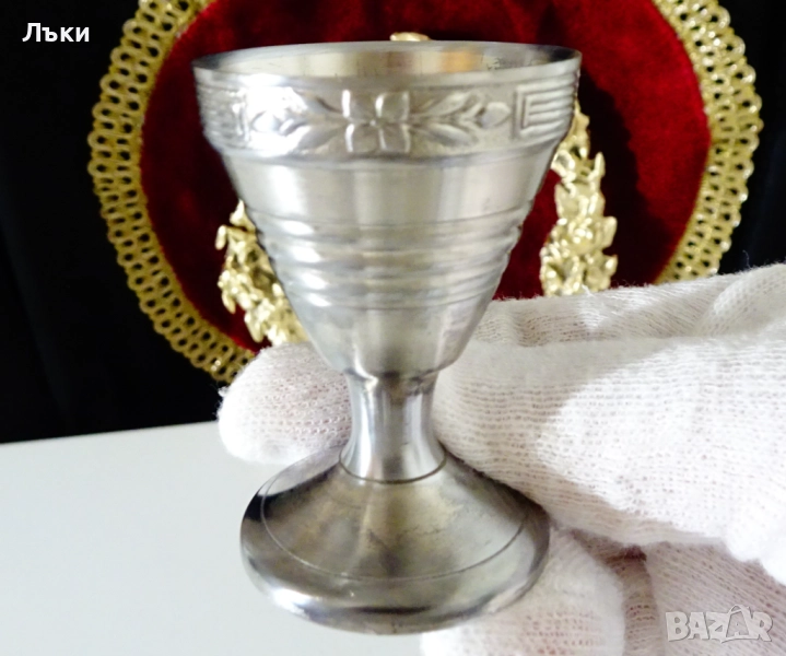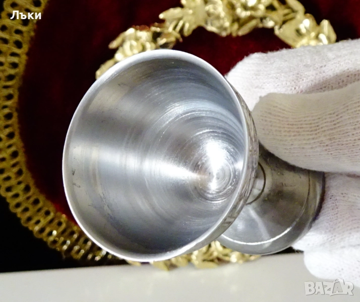 столче,майсторска ръчна изработка от 95% калай и 5% сребро.Релефно декорирани с
