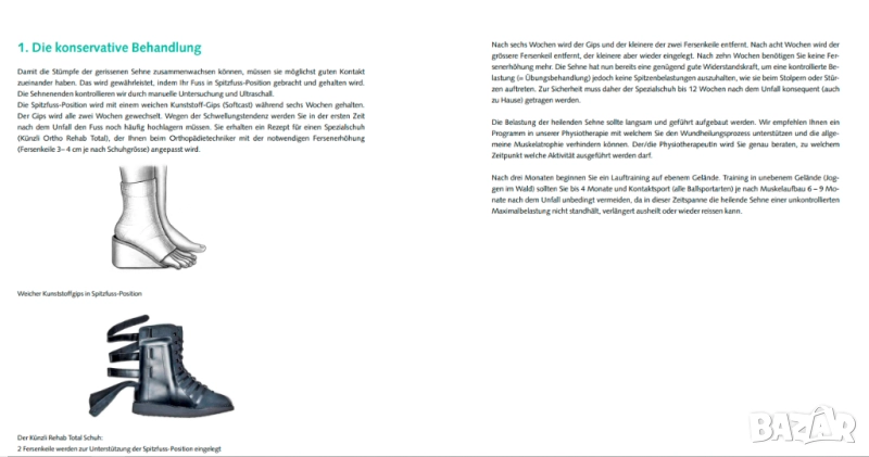 Намаляване на напрежението в ахилесовото сухожилие : Чрез поставяне на клинове с две различни дебелини, стъпалото се привежда в плантарно сгънато положение от приблизително 30°, което намалява напрежението върху ахилесовото сухожилие.