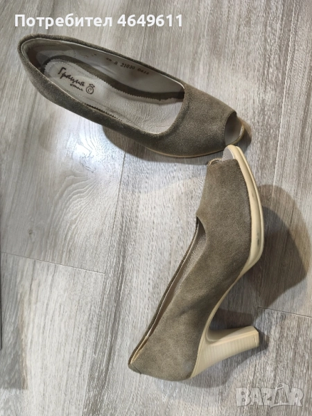 нови обувки "Грация", неносени, естествен велур, българско производство, удобен дебел ток