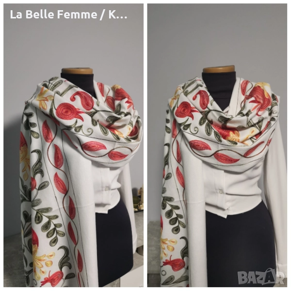Кашмирен шал декориран с бродерия, снимка 1 - Шалове - 52406904 Кашмирен шал декориран с бродерия, снимка 2 - Шалове - 52406904 1/2