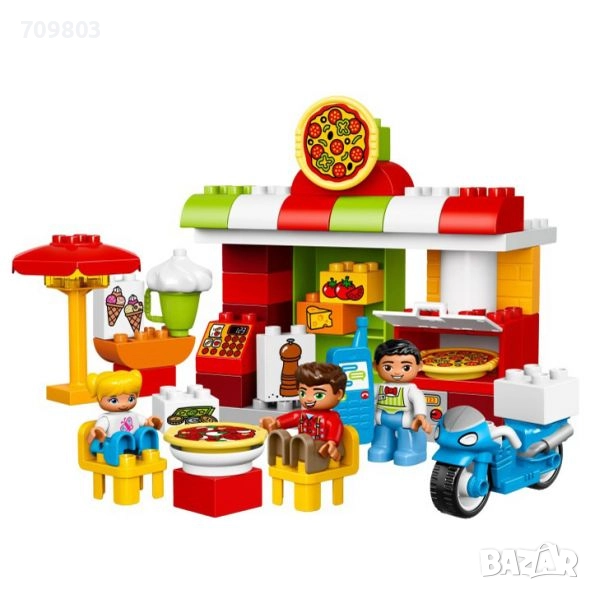 В кутията младите пица-майстори ще намерят и различни аксесоари – мобилен телефон, мотор за доставка на пици по домовете, мелничка за пипер и др