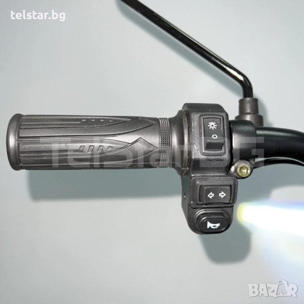 - задно предаване, с диференциал - брой места: 3- местна - спирачна система: 1 крачна и 2 ръчни спирачки за по-удобно спиране - 3 скорости - аварийни светлини - ГОЛЯМ дигитален LCD дисплей тип apple показващ над 5 параметъра - странични светлоотразители - задна скорост - пълна светлинна окомплектовка ( преден LED фар тип ЛУПА , мигачи- предни, задни, стопове, габарити) - клаксон - метална кошница за багаж отпред и отзад Подарък- огледала за задно виждане 2 броя при закупуване!